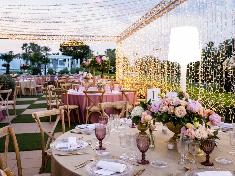 Nuestra oferta se adapta a todo tipo de celebraciones: desde cócteles de bienvenida en los jardines hasta banquetes elegantes en nuestros salones con vistas al mar. Los menús para bodas incluyen opciones personalizables, estaciones temáticas, showcooking en vivo y una cuidada selección de vinos.